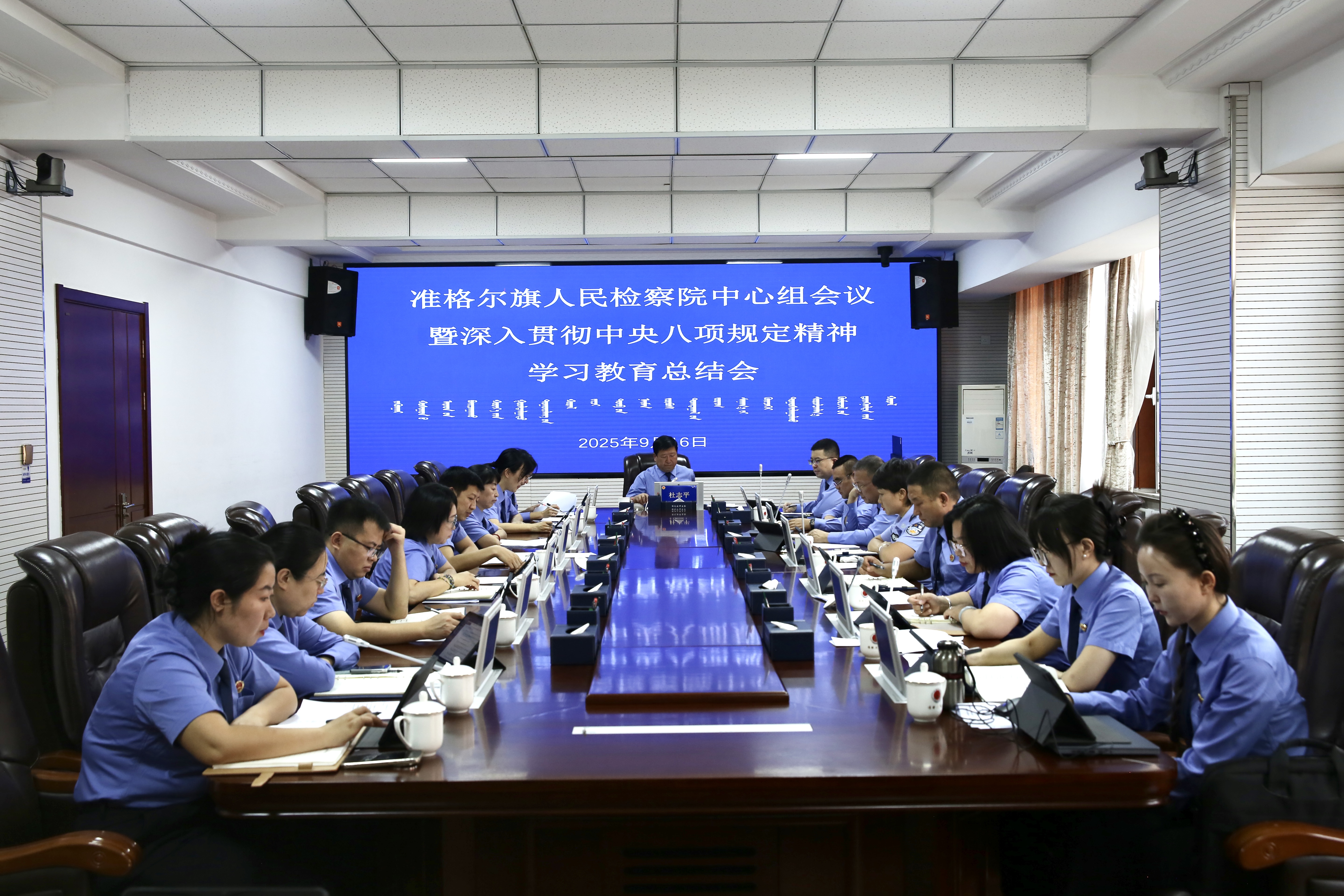 9月16日,准格尔旗人民检察院召开党组中心组会议暨深入贯彻中央八项规定精神学习教育总结会,传达学习习近平总书记关于深入贯彻中央八项规定精神学习教育的重要指示精神,及自治区党委、市委、旗委总结会议精神,对全院深入贯彻中央八项规定精神学习教育开展情况进行全面总结。