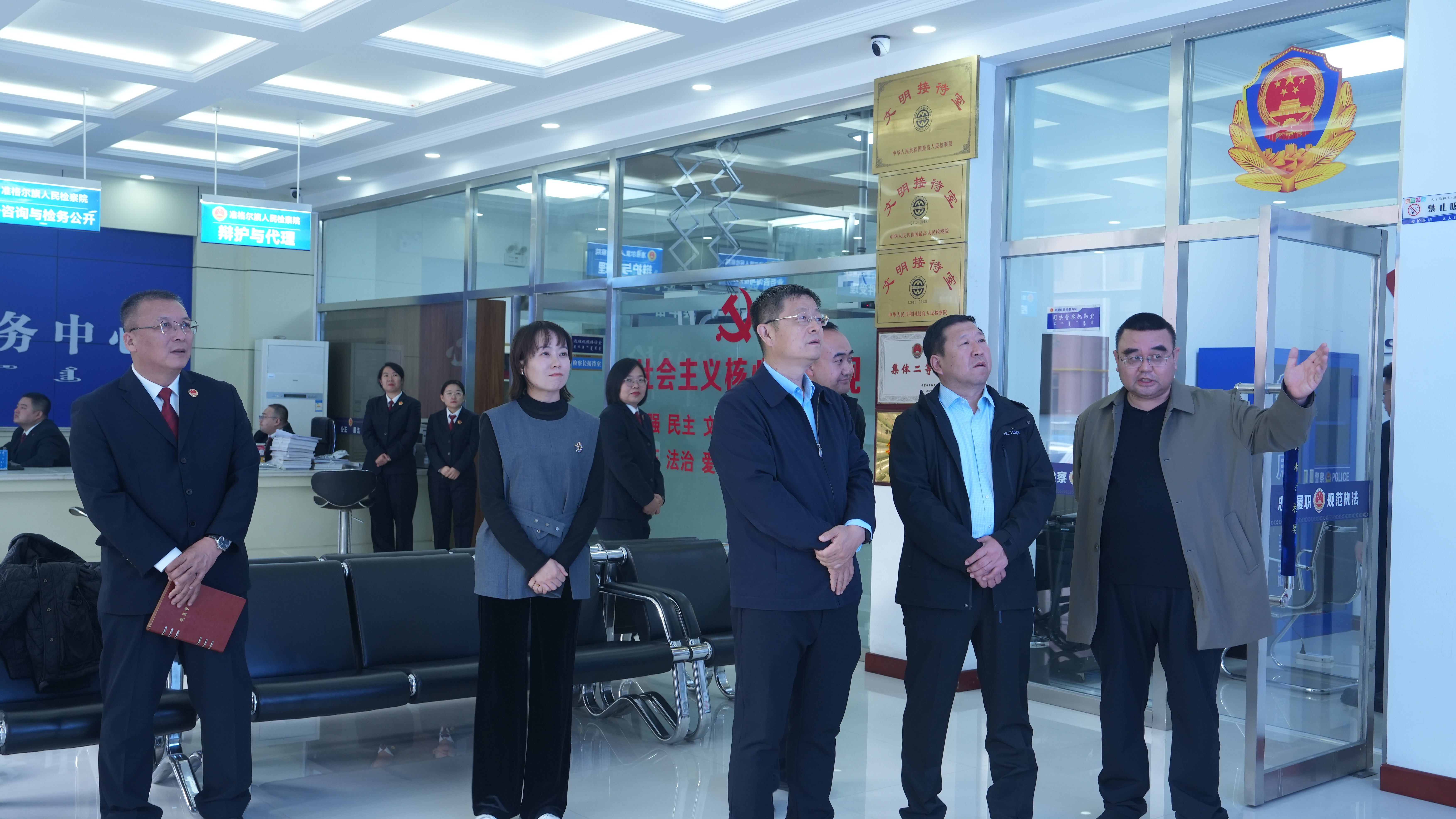 调研组一行实地参观了院办案区、12309检察服务中心、党员活动室、民族团结展室等,并与院领导班子成员、办公室、控告申诉负责同志召开座谈会。