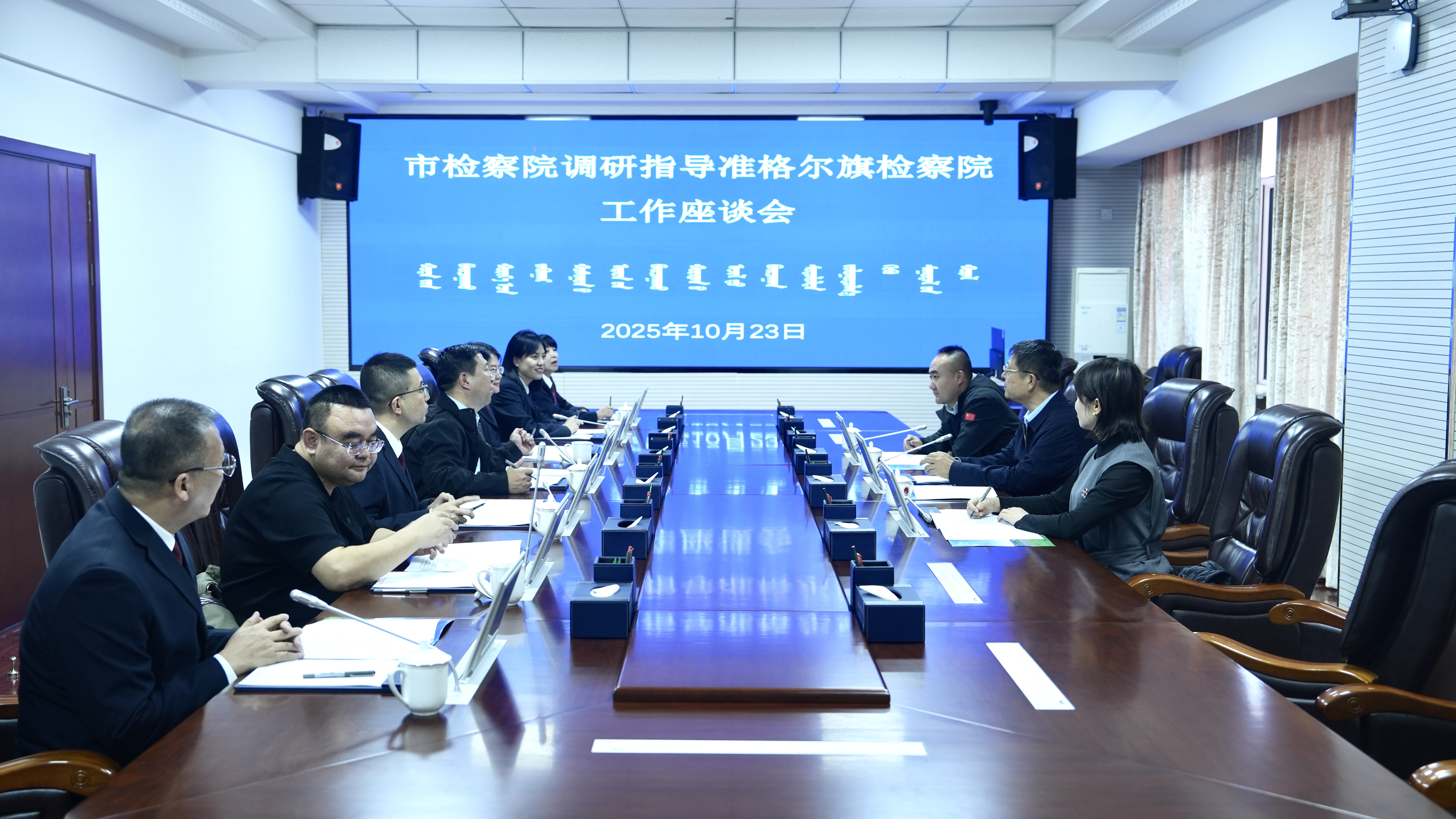 10月23日下午,鄂尔多斯市人民检察院党组副书记、副检察长吕俊义一行到准格尔旗人民检察院调研指导工作并召开座谈会。准格尔旗人民检察院党组书记、检察长杜志平主持座谈。