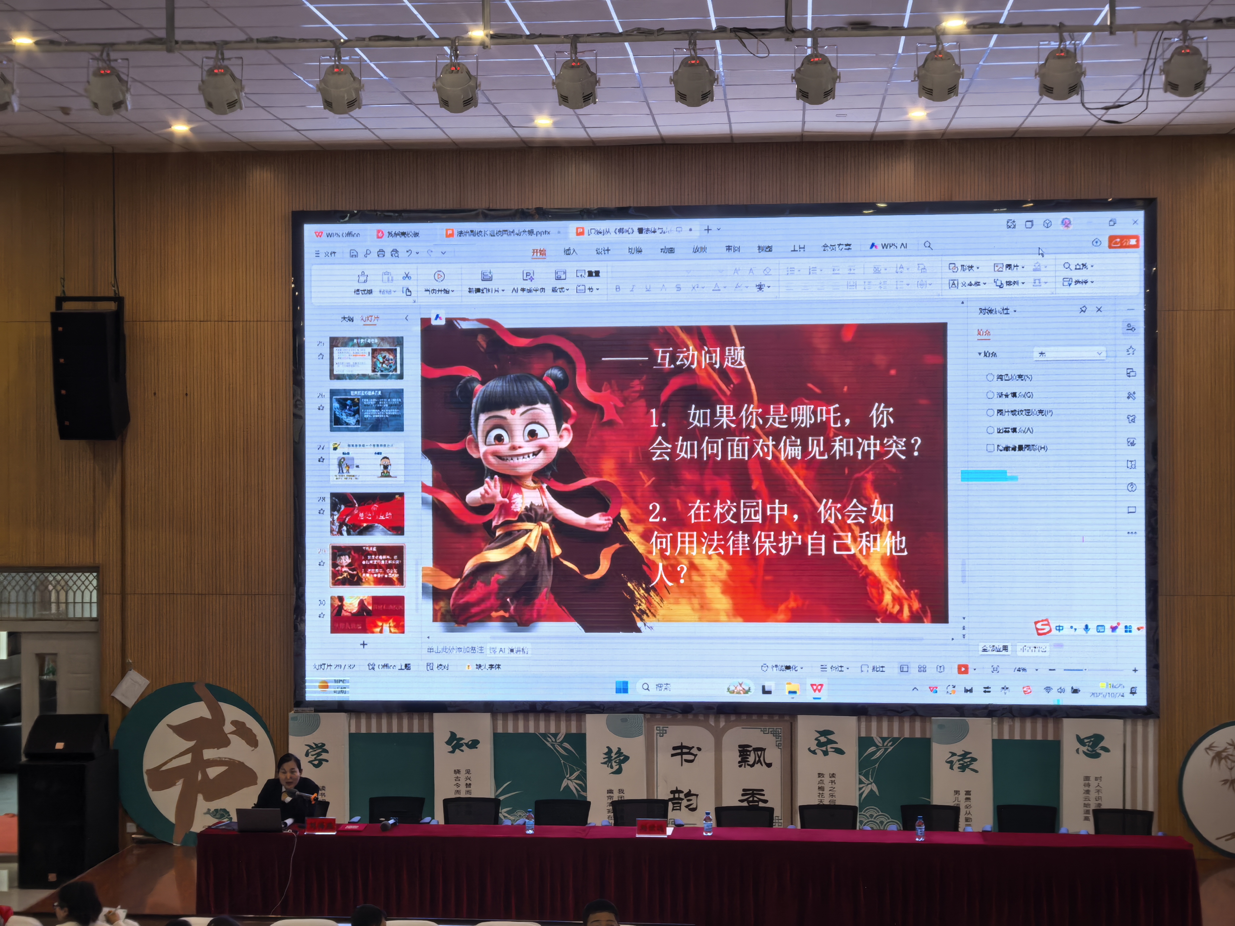 课堂上,法治副校长以哪吒的故事为引,结合生动具体的案例,深入浅出的讲解和问答互动的模式,把课堂氛围推向高潮,以哪吒的成长经历教会学生如何辨别校园欺凌的行为,了解法律的重要性以及如何运用法律的武器保护自己,鼓励同学们争做学法,懂法,守法,用法的好少年。