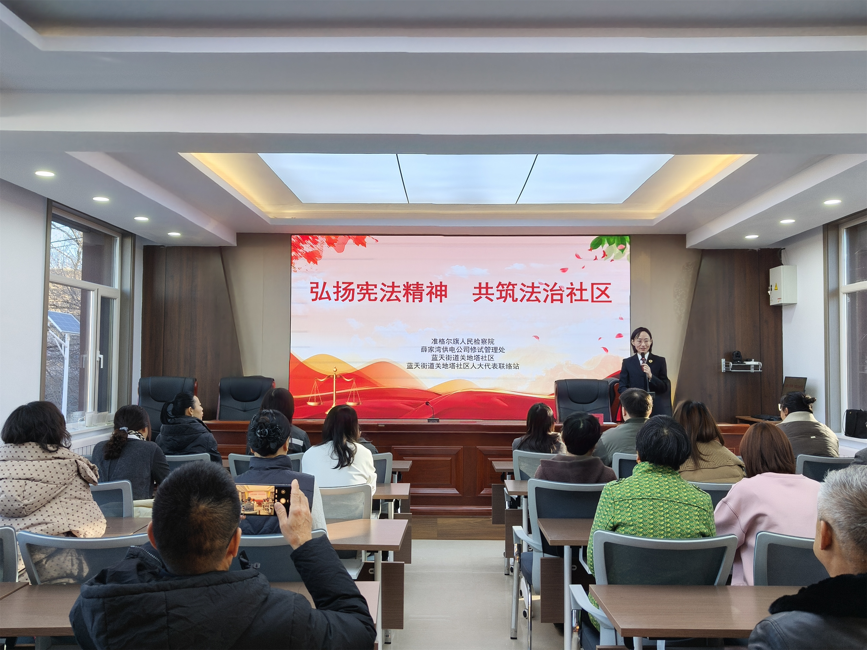 活动中,准格尔旗人民检察院党组成员、副检察长莎日娜为社区居民送上一场内容丰富的法治宣讲课。讲座中,莎日娜副检察长深入浅出地解读宪法的起源、核心内涵与重要意义。同时,结合居民们生活中遇到的热点问题,以实际案例的形式为大家普及法律知识。社区居民表示,通过此次活动不仅学到了实用的法律知识,更对宪法精神和检察职能有了全面深刻的认识,是一次非常有意义的法治教育实践。