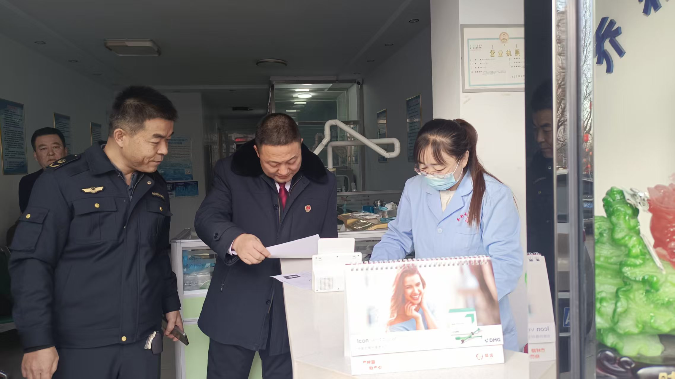 检察人员通过现场询问药店或诊所相关负责人、现场核查档案记录等方式,严格把控相关人员从业资质、诊所环境卫生、药品分类管理等风险关。检察人员排查了药店和诊所从业人员的从业资质、执业药师在岗情况,是否存在违规销售不合格药品,特殊药品是否采取必要的冷藏防潮等措施,是否存在违规出售处方药,处方药与非处方药是否分类管理等问题。对部分开展放射性诊疗活动的口腔诊所重点核实其是否取得放射诊疗许可证以及辐射安全许可证、操作人员是否经培训合格上岗、是否对在岗人员定期进行职业健康体检等事项。同时,对诊疗项目是否明码标价、保健食品是否明确提示不得作为药品使用等保障消费者知情权的事项进行了排查。公益诉讼工作人员还积极向经营者宣传药品、诊疗安全相关法律法规以及公益诉讼检察职能,督促其依法合规经营,营造良好的药品、诊疗市场环境。